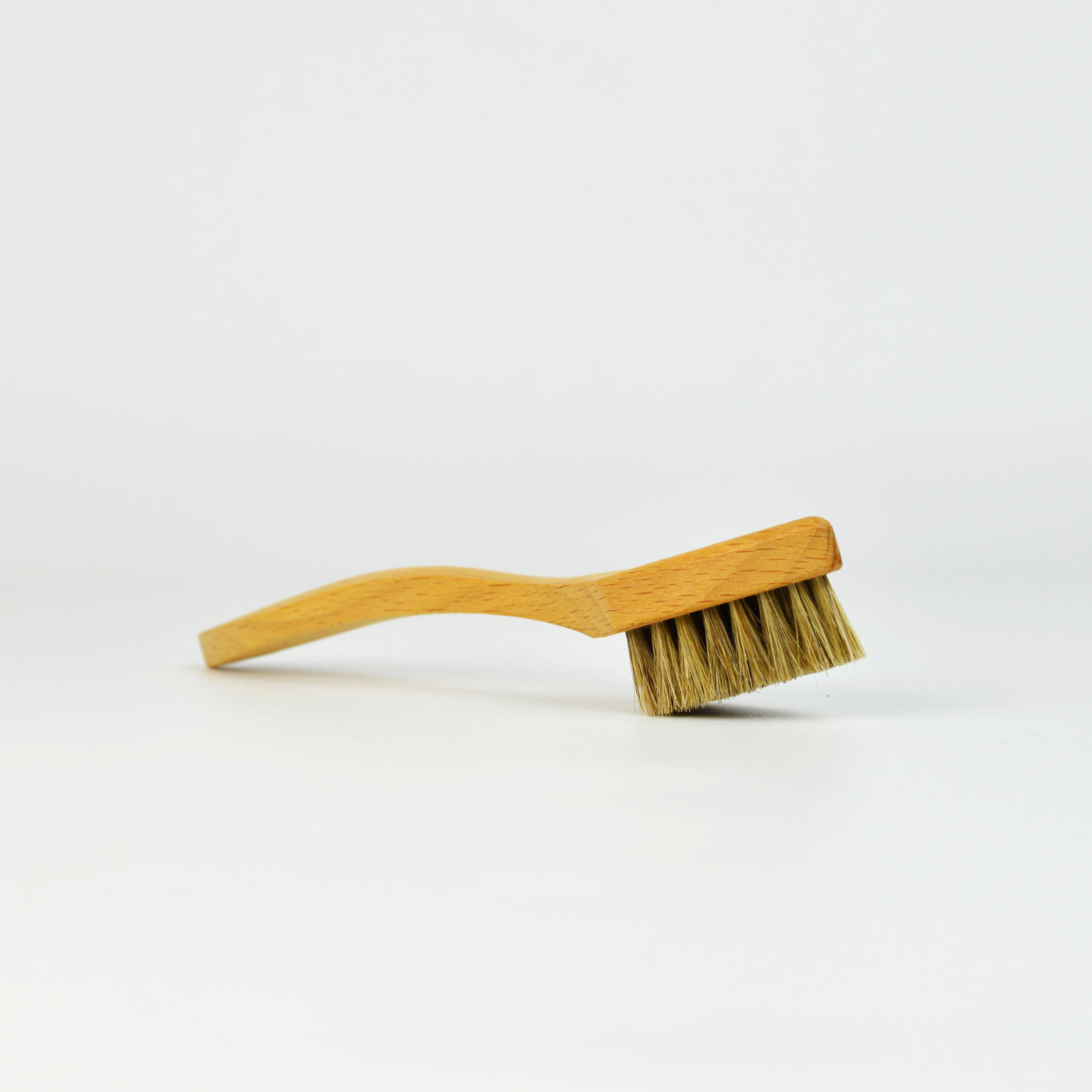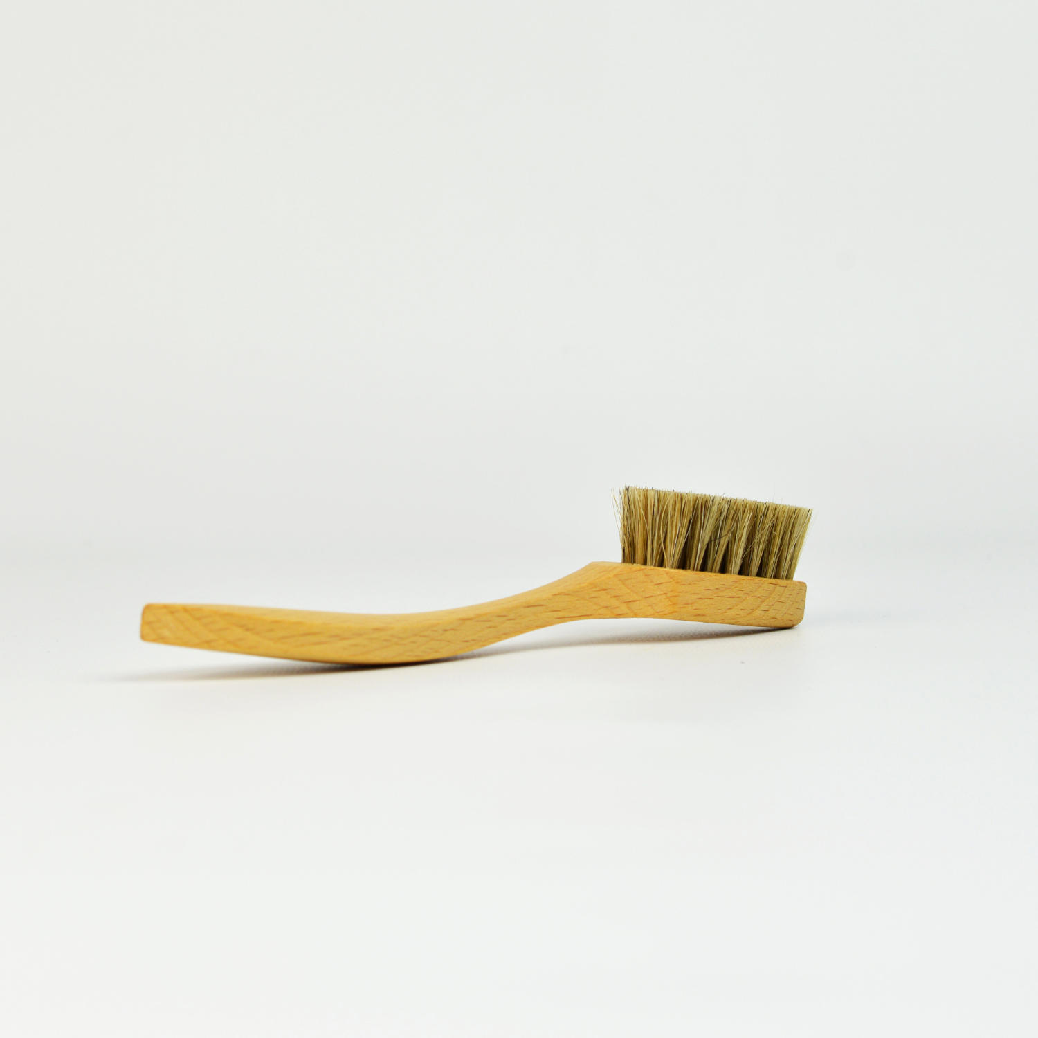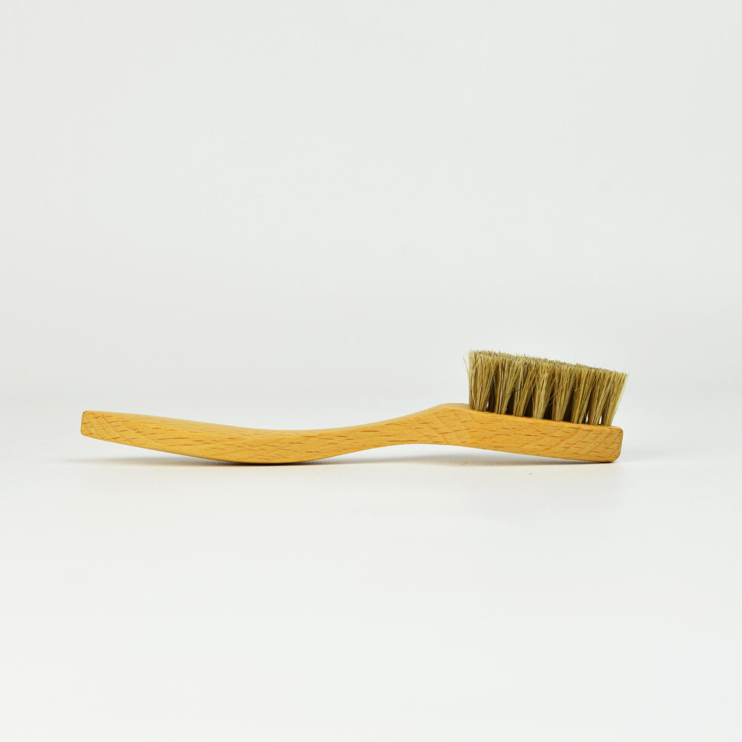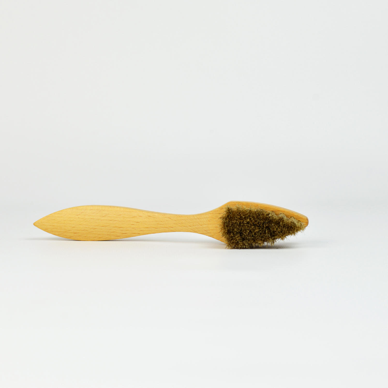 Der ergonomisch gestaltete Stiel aus robustem Holz ermöglicht eine komfortable Handhabung. Eine präzise Kontrolle beim Auftragen unserer nachhaltigen Schuhpflege sowie zum Verteilen der Imprägnierung ist dadurch gegeben. Mit seiner idealen Länge bietet er eine optimale Reichweite, um auch schwer zugängliche Stellen, Nähte und Ösen an den Schuhen problemlos zu erreichen.