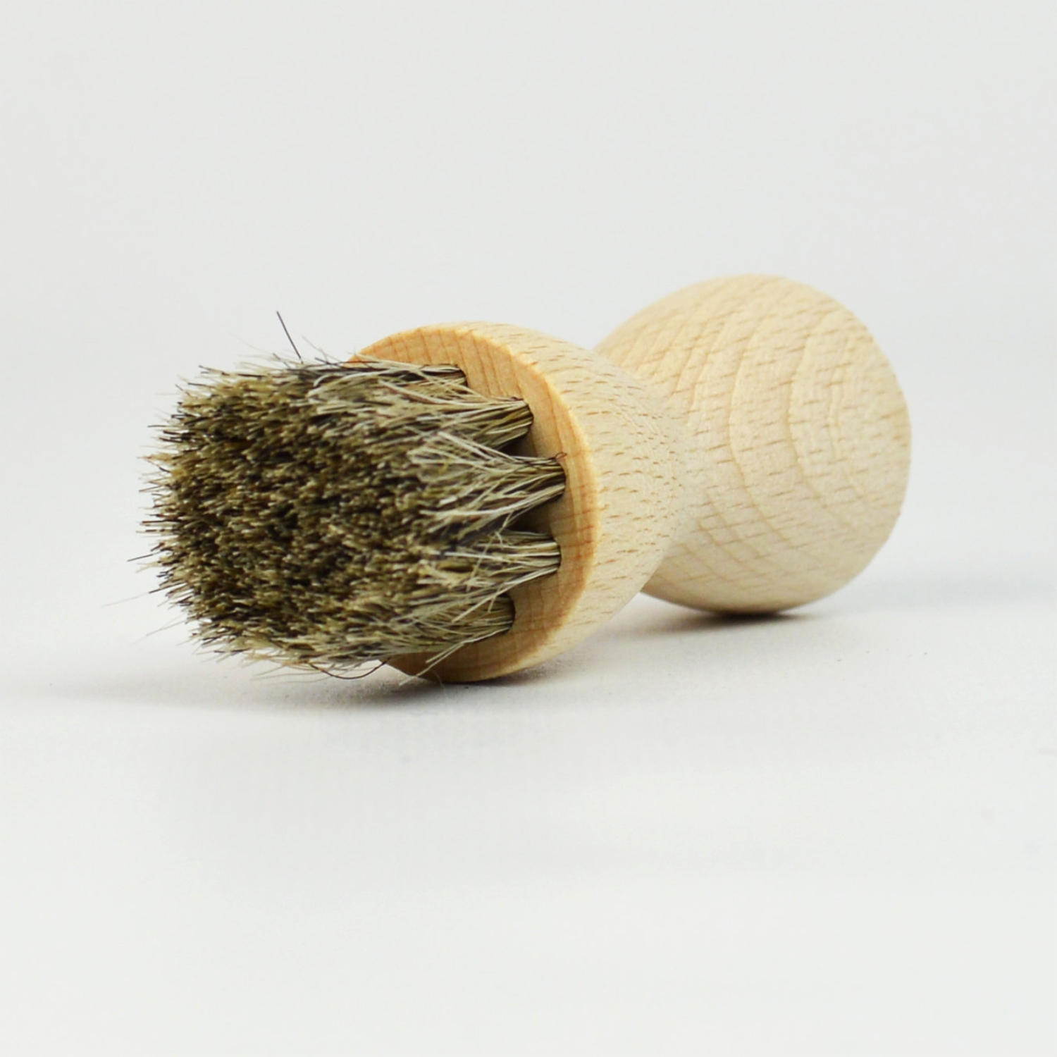 Die runde Auftragsbürste aus hellem Rosshaar – zum Auftrag von Schuhcreme oder Imprägnierung