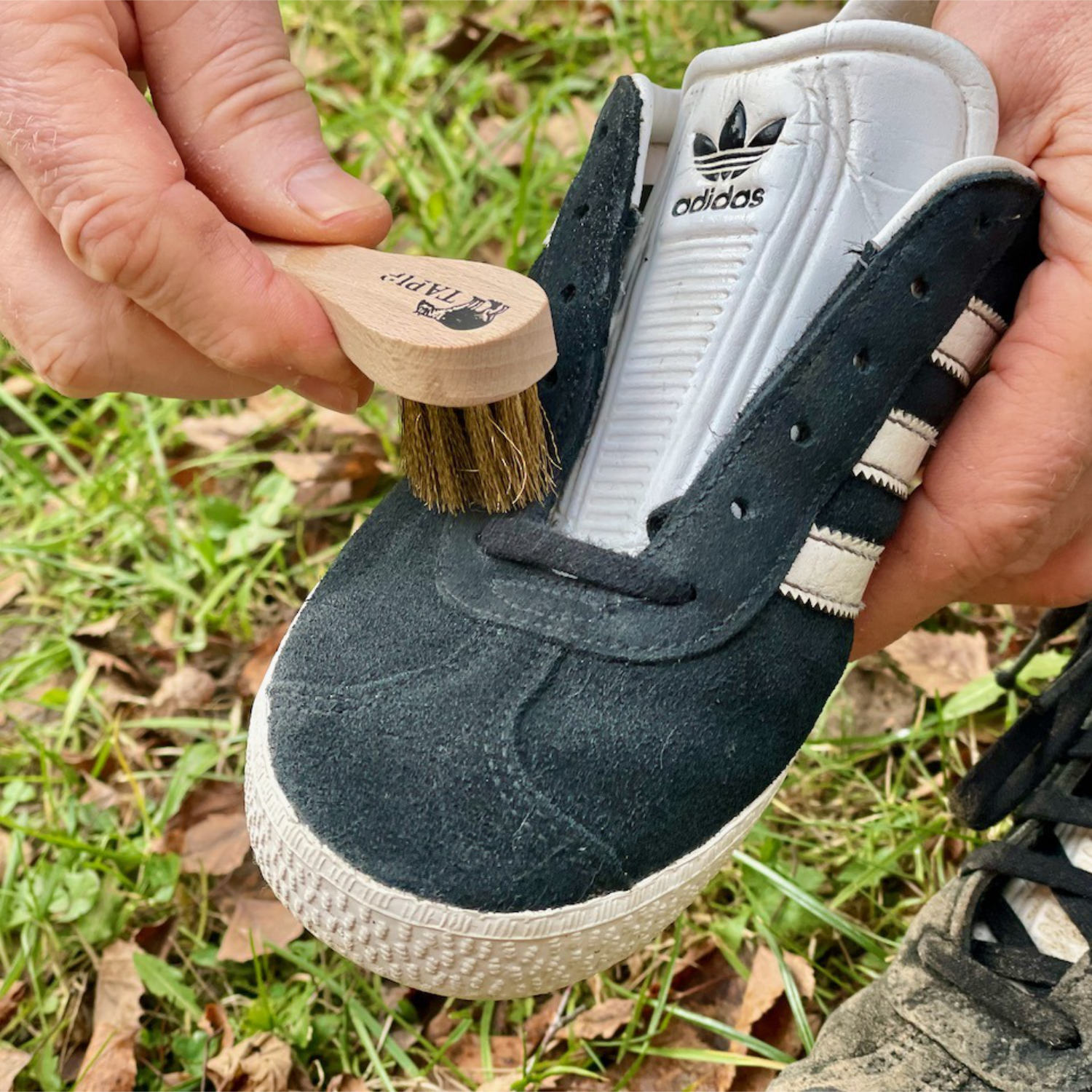 Die Tapir Wildlederbürste mit Messingborsten ist ein unverzichtbares Werkzeug für die Pflege von Wildleder, Velours- und Nubukleder. Sie bietet eine effektive Lösung zur Reinigung und Auffrischung dieser empfindlichen Materialien, ohne ihre Struktur oder Textur zu beeinträchtigen. Die Messingborsten der Bürste sind besonders sanft und schonend für das Wildleder, während sie gleichzeitig hartnäckigen Schmutz und Ablagerungen effektiv entfernen. Im Gegensatz zu herkömmlichen Bürsten bieten die Messingborsten eine feine Reinigungswirkung, die das Material nicht beschädigt und gleichzeitig seine natürliche Weichheit und Geschmeidigkeit bewahrt.