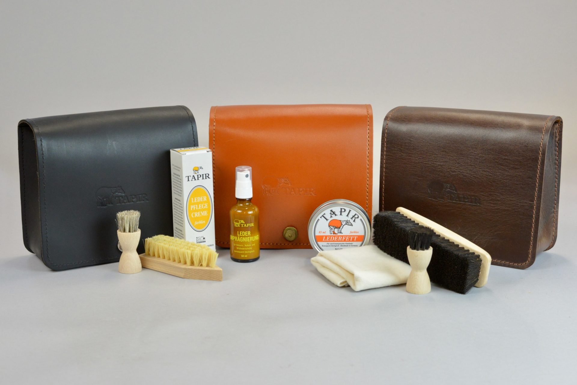Wenn einer eine Reise tut … Hochwertiges Reiseset für die Schuhpflege mit Ledertasche