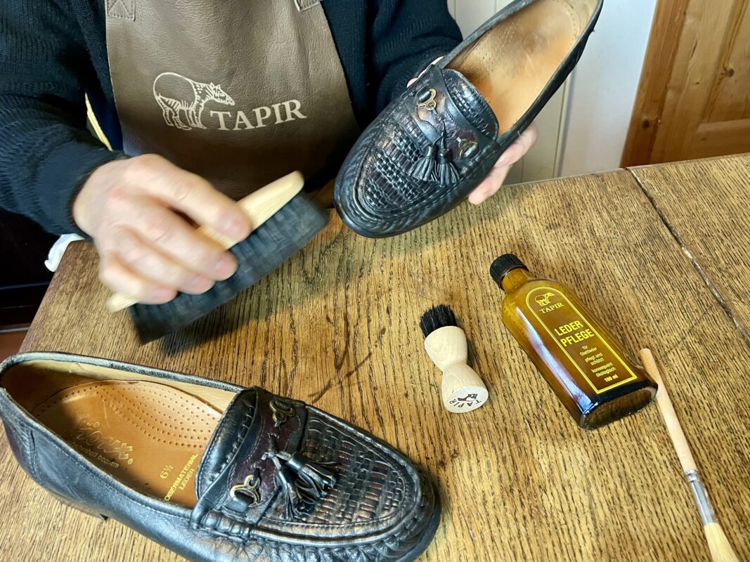 Wie reinigt und poliert man schwarze Glattlederschuhe mit Tapir Lederpflegecreme