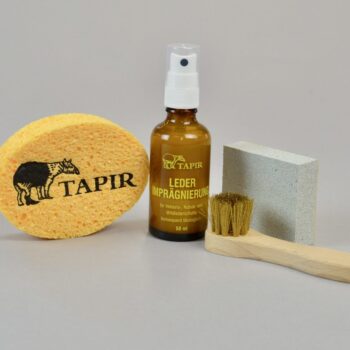 Schuhe aus Wild-, Nubuk-, oder Veloursleder sehen elegant und chic aus – allerdings benötigen sie auch eine regelmäßige und passende Schuhpflege mit geeigneten Produkten. Klingt kompliziert und teuer? Ganz und gar nicht. Denn damit Sie sich keine großen Gedanken zur passenden Schuhpflegeroutine Ihrer Schätze aus Rauleder zu machen brauchen, haben wir von Tapir das passende Schuhpflege-Set für Sie entwickelt. Unser Schuhpflegeset „Auf Samtpfoten unterwegs!“ ist speziell für die regelmäßige Pflege Ihrer Wild, Velours- und Nubuklederschuhe zugeschnitten. Dieses Set pflegt, nährt und schützt mit der Imprägnierung Ihre schönen Wildlederschuhe. Ergänzend hierzu erhalten Sie einen Rauleder-Radierer zur Vor- und Nachbehandlung sowie eine Messingbürste, um den Schuh wieder frisch und gepflegt zu zeigen.