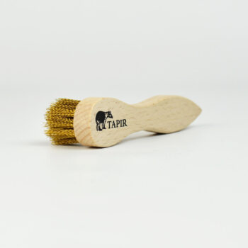 Die Imprägnierung wird nun noch mit der Messingbürste eingearbeitet, sodass sie bis tief ins Leder eindringt und sich die Fasern des Veloursleders wieder aufstellen. Und schon ist der erste Schuh fertig gereinigt und gepflegt.
